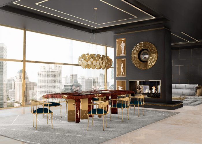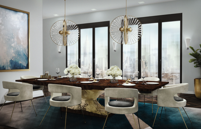 For an upgrade level of sophistication of your dining room, choose a dining table with trend gold accents. It’s a great complement to a luxury modern dining room.
