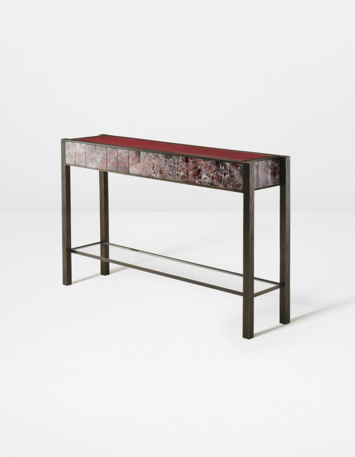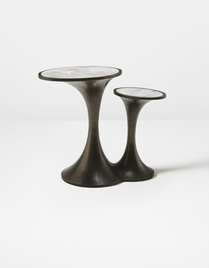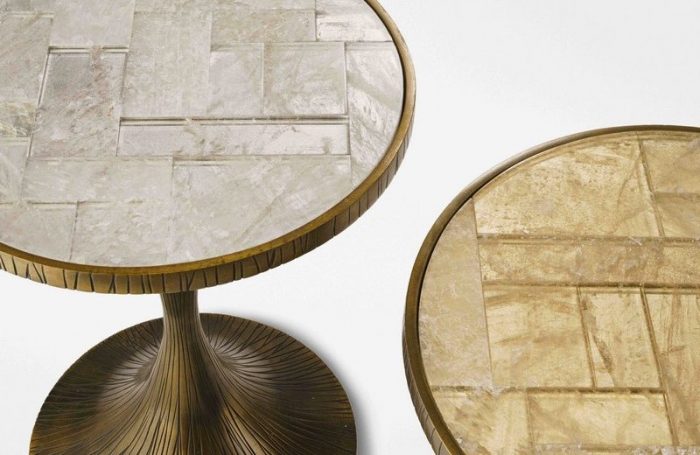 Likewise, apply rock crystal to pieces like the linear and fluent Rocco gueridon.