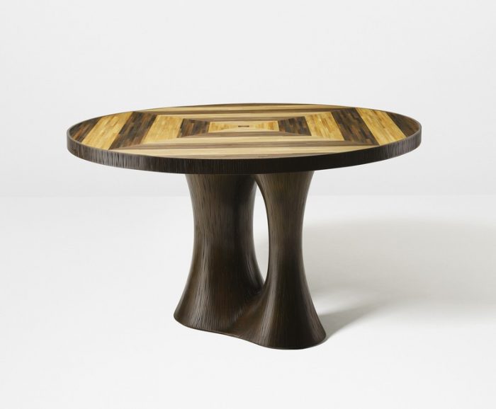 Since techniques such as patinated bronze, crystal facets, and straw marquetry have been used. In addition, it consists of a series of furniture, lighting for upholstery and accessories in finishes such as wicker, tweed, velvet, rock, crystal, marquetry and mica.