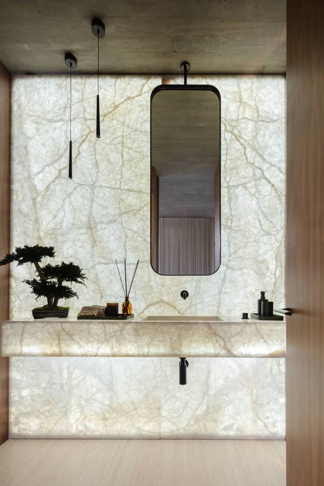 An upcoming trend, a consequence of the natural decor trend seen lately. Illuminating stones brings a sense of warmth and welcoming to bathroom decor, specifically.
